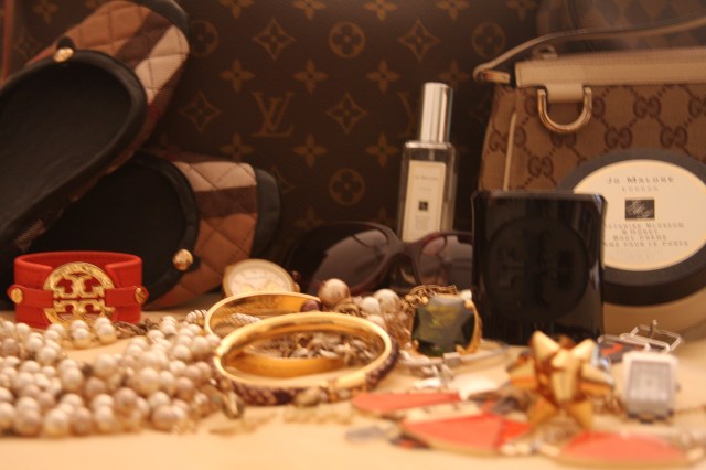Necklaces: Tiffany & Co., H&M (old), Stella & Dot (old) / Bracelets: David Yurman, Tory Burch (others old), Kate Spade, Stella & Dot (old), Alisa, Tiffany & Co. / Watches: Baume & Mercier – similar here, Michael Kors, Timex / Rings: Trina Turk (old), Kate Spade (old)/ Slippers: Burberry (old) / Purses: Louis Vuitton, Gucci / Parfume and Creme: Jo Malone / Sunglasses: Tiffany &Co.